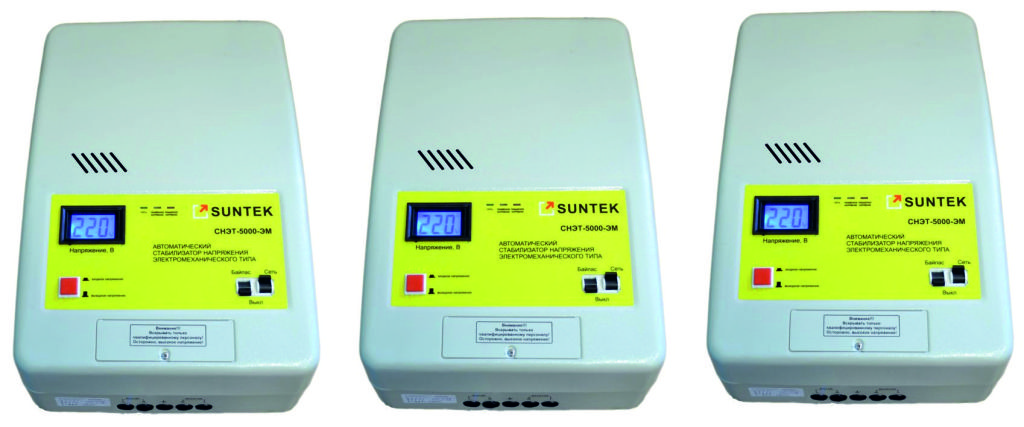 Гарантия производителя! Комплект из трех стабилизаторов SUNTEK электромеханического типа, суммарная мощность составляет 15 КВА ( по 5 КВА на фазу).